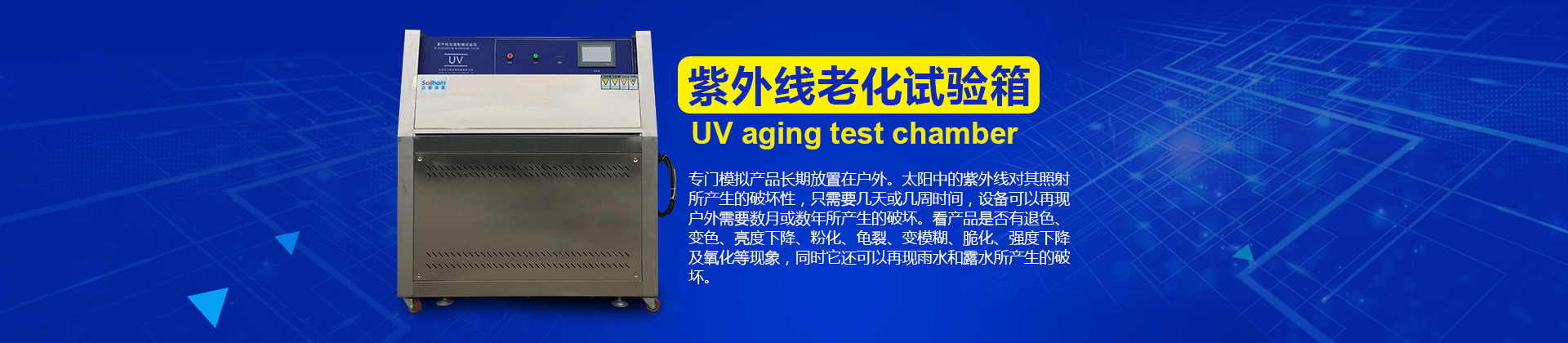 紫外線(UV)與陽(yáng)光的模擬 盡管紫外光(UV)只占陽(yáng)光的5%,但是它卻是造成戶外產(chǎn)品耐用性下降的主要光照因素。這是因?yàn)殛?yáng)光的光化學(xué)反應(yīng)影響隨著波長(zhǎng)的減少而增加。 因此在模擬陽(yáng)光對(duì)材料物理性質(zhì)的破壞影響時(shí),不需要再現(xiàn)整個(gè)陽(yáng)光光...